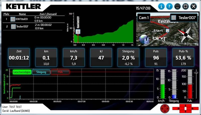 Med programmet Kettler World Tours 2.0 får du mulighed for at cykle på masser af ruter rundt omkring i verden. Hvad siger du f.eks. til at prøve kræfter med Alpe d'Huez eller tage på tur rundt i London eller Rom? Du kan selvfølgelig også selv indtegne din personlige favoritrute fra lokalområdet.